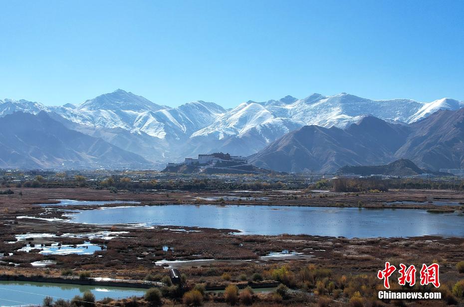 位于西藏拉薩的拉魯濕地國家級自然保護區是目前世界上海拔最高的城市內陸天然濕地,保護區總面積12.2平方公里,被譽為“拉薩之肺”。初冬時節,拉魯濕地與遠處的布達拉宮、周圍的雪山構成一幅壯美畫卷。圖為11月8日,拉魯濕地景色。(無人機照片)