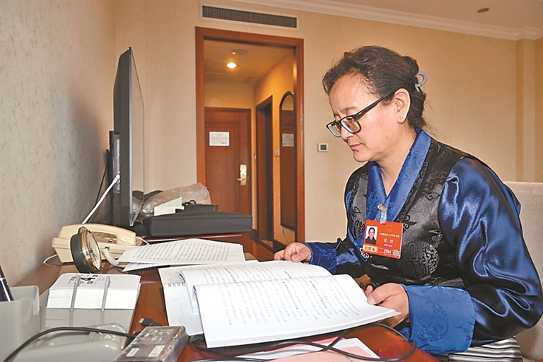圖為全國人大代表尼珍。記者 李洲 攝