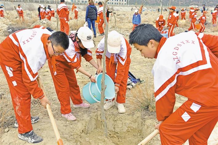 西藏林芝廣東實驗學校組織學生參加義務植樹活動