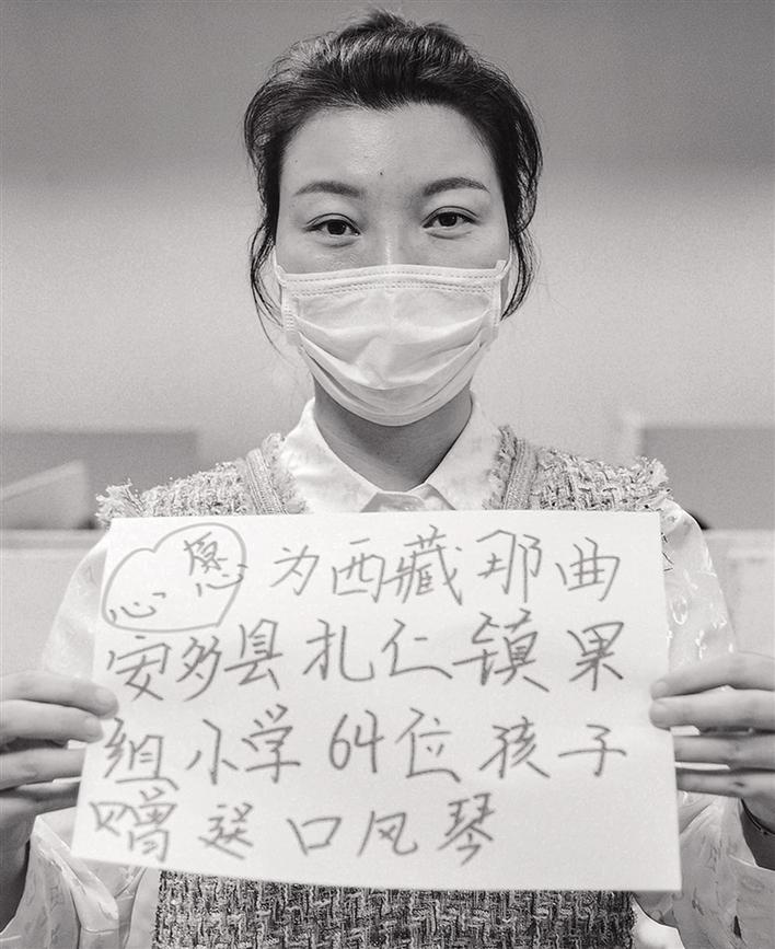 3月6日,為了讓奮戰(zhàn)在抗疫一線的英雄感受到社會(huì)的敬意,阿里巴巴天天正能量聯(lián)合全國媒體發(fā)起了“共圓英雄夢(mèng)”活動(dòng)。記者詢問柏雪有什么心愿,她說:“我想給西藏那曲市安多縣扎仁鎮(zhèn)果組小學(xué)的64名孩子送口風(fēng)琴!”