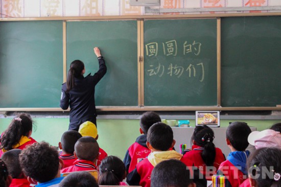 圖為派出所民警為孩子們授課 攝影:次仁吉啦