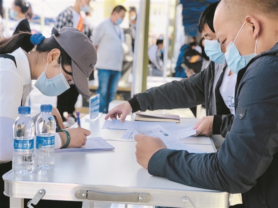 記者在招聘會現場看到,不少高校畢業生正與自己心儀的企業進行溝通,仔細詢問薪資待遇、培訓提升等情況,雙方滿意后達成用工意向協議。