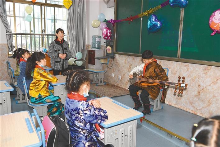 圖為拉薩市北京小學西校區的孩子們在主題班會上展示才藝。記者 唐斌 次旺 攝