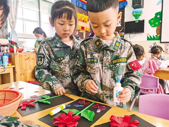 圖為教師節來臨之際,西藏軍區機關幼兒園的學生為老師制作節日祝福卡片。記者 王莉 攝