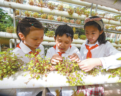 近日,江蘇省海安市城南實驗小學組織學生走進現代農業園,近距離感受先進農業栽培技術,豐富學生課外生活。翟慧勇攝