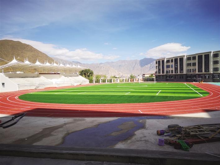為一睹拉薩市城關(guān)區(qū)第六小學的真容,記者來到拉薩河南岸的慈覺林,沿著格桑路一路前行,在妙光大道與云天路交叉路口看到了已經(jīng)建設(shè)完成的城關(guān)區(qū)第六小學,該小學位于中國西藏文化旅游創(chuàng)意園內(nèi)。目前,教學綜合樓、教學樓、教工宿舍、學生食堂、操場等已建設(shè)完成,并完成初驗,預(yù)計2020年12月移交城關(guān)區(qū)政府投入使用。學校內(nèi)寬廣的足球場、紅色的塑膠跑道非常吸引人,“等學校投入使用后,孩子們就可以在這里踢足球、打籃球,愉快地玩耍了。”拉薩市加快教育改革和發(fā)展領(lǐng)導(dǎo)小組辦公室工作人員甲措說。