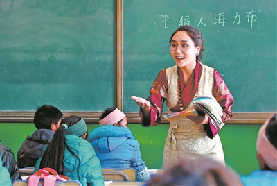 因為熱愛,所以專注。青海省玉樹藏族自治州囊謙縣東壩鄉寄宿學校教師桑丁卓瑪,精心準備每一堂課,認真上好每一堂課,受到學生的喜愛。這是她在為五年級學生上漢語文課。