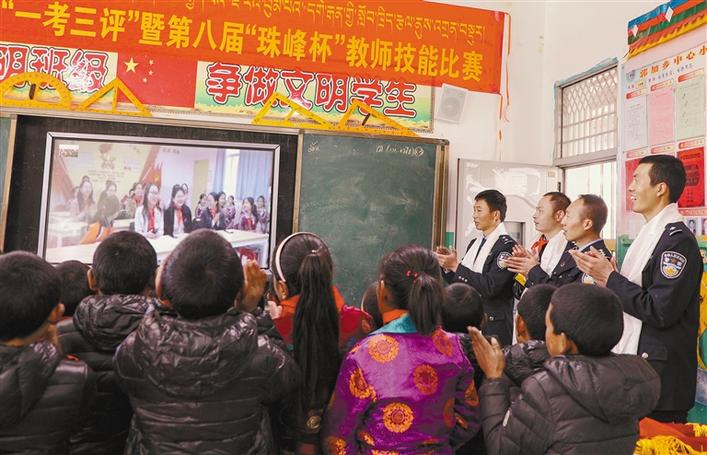 收到愛心棉服的郭加鄉中心小學學生,在郭加邊境派出所民警的幫助下,視頻連線鎮田小學師生,通過這種特殊的“云牽手”方式,為鎮田小學師生獻上了熱情的鍋莊舞和天籟般的藏族歌曲。一聲聲稚嫩的童音、一句句真誠的問候,讓相隔千里的兩地學生心連心,姐弟倆的愛心延伸成了兩份來自大江南北的溫暖,架起了一座從廣東東莞到日喀則定結的跨越千里的友誼之橋。