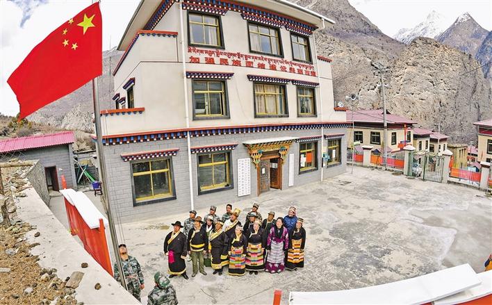 3月20日,西藏林芝市西日卡村村民代表在村委會小廣場舉行升國旗、唱國歌儀式。61年前,五星紅旗在西日卡村冉冉升起,開啟了一個村莊和一面國旗不可割舍的情懷。從此,升國旗成為這個雪域山村不變的傳統。鮮艷的國旗,印記著西日卡村農奴翻身解放的歲月,見證著邊陲村莊日新月異的變遷。新華社記者 張汝鋒 攝