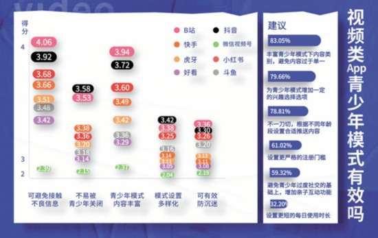 面對目前各平臺青少年模式良莠不齊的現狀,參與測評的大學生也有自己的見解。在剛剛畢業1年的95后教師姜煒眼里,部分軟件青少年模式下推薦的內容不能滿足青少年的興趣。“好看視頻給我推薦的都是動畫片,我教的高中生不太感興趣;小紅書的青少年模式入口有點難找,找到以后推薦給我的都是考研相關內容,對未成年人來說可讀性不高;斗魚、虎牙這類直播平臺,本身大部分都是游戲類內容,青少年模式下幾乎大多數內容都會被屏蔽,我相信任何使用這兩款軟件的青少年都不愿意使用青少年模式。”不過,他給抖音和B站打了高分。“這兩款軟件的推送內容除了有興趣類的,還有一些名師課程,符合青少年的興趣。”