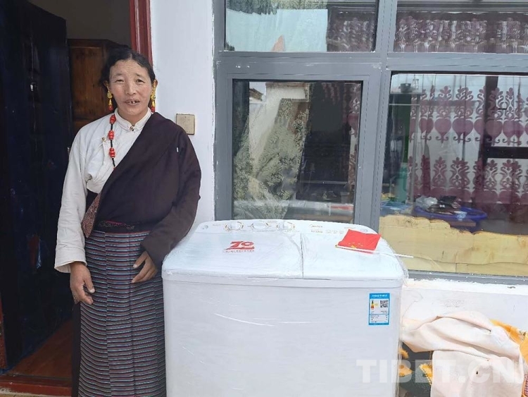圖為西藏自治區那曲市色尼區羅瑪鎮凱瑪村村民美美家收到的中央代表團贈送的禮物——大功率洗衣機 攝影:吳建穎