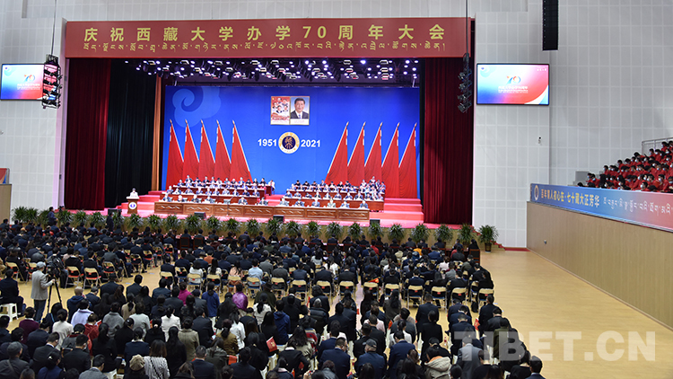 中國西藏網訊 “7、6、5、4、3、2、1?!卑殡S著現場的倒計時,10月16日上午,慶祝西藏大學辦學70周年大會在花草茵茵、樓宇林立的西藏大學納金校區召開。
