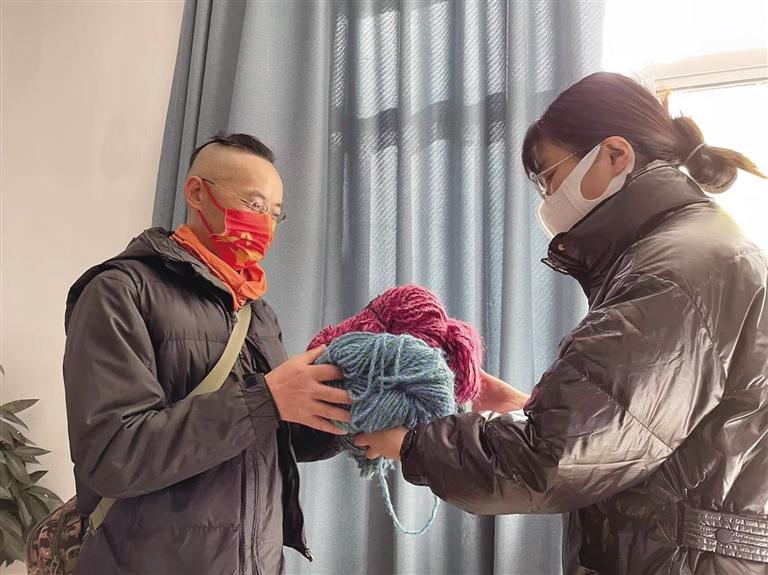 活動啟動后,有不少愛心人士前來領取毛線,大家精心挑選毛線的粗細、精心搭配花色,討論著針法,力爭為孩子們織出最好的針織品。