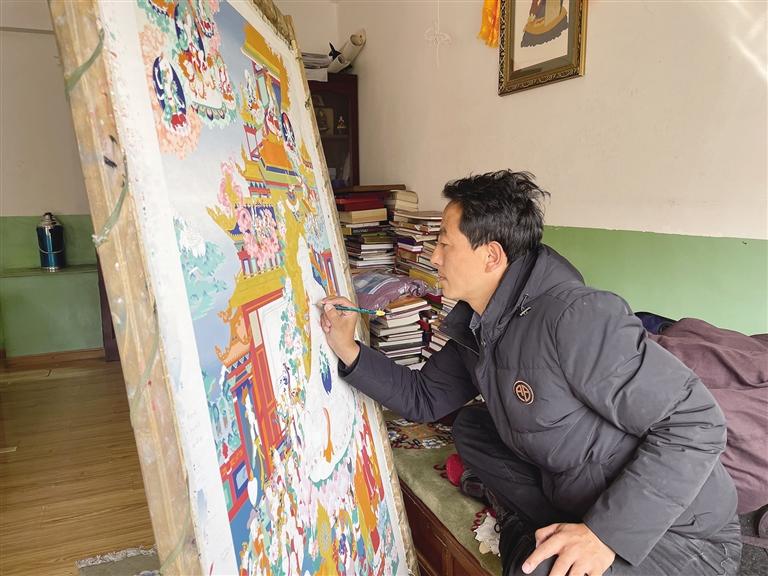 國家級非物質文化遺產藏族唐卡勉薩派自治區級代表性傳承人貢覺杰,是日喀則市拉孜縣若錯勉沖唐卡世家的第五代傳承人。他自幼跟隨家族中的長輩學習唐卡,如今已成長為唐卡畫師中的“佼佼者”。藝無止境,是貢覺杰的堅持。2016年,一次赴清華大學美術學院學習的偶然機會,徹底改變了他的創作思路。今天,一起聽聽他和新題材唐卡的故事。文/圖 記者 趙越