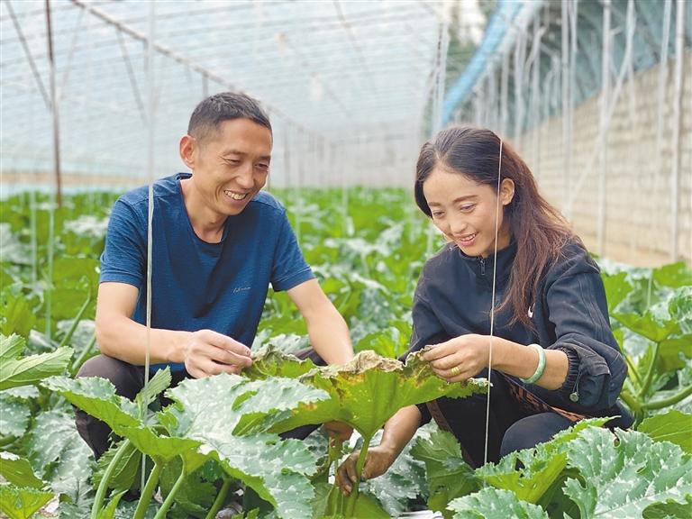 蘇州市援藏工作組通過智力支持與技術支援,助力林周縣構建起完善的農產品監管體系。圖為在溫室大棚內工作人員卓瑪(右)在學習種植知識。