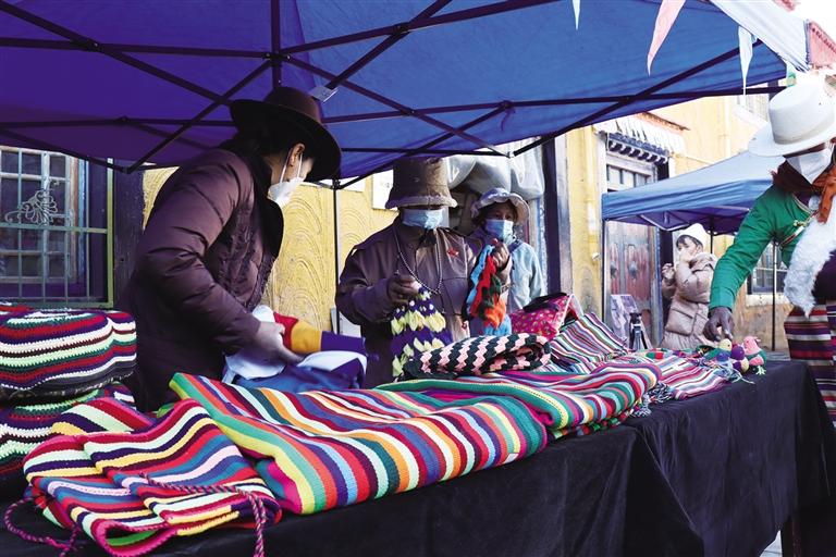 記者在現場看到,展出的板塊種類豐富,有文化創意產品區、本土餐飲區、工藝品區、家居軟裝區、民族服飾、農牧民合作社手工產品區(易地搬遷戶)、生活用品區等。所展出的產品充滿民族特色,吸引了不少市民和游客的目光。“我剛好住在卓番林附近的客棧,聽說這里有‘古院市集 年味拉薩’的活動,想借此機會深入了解一下本土文化,今天展出的一些產品是市面上很少見的,非常有趣。”游客胡女士說。