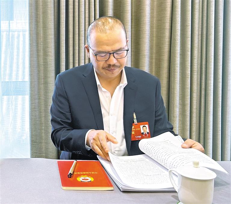圖為 3月5日,達(dá)珞參加少數(shù)民族界小組討論。
