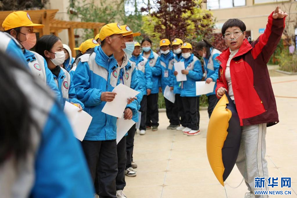 在西藏自治區(qū)那曲市色尼區(qū)第二中學(杭嘉中學),志愿者陳春玉正在引導學生排隊驗光(6月22日攝)。新華社發(fā)(趙穎碩 攝)
