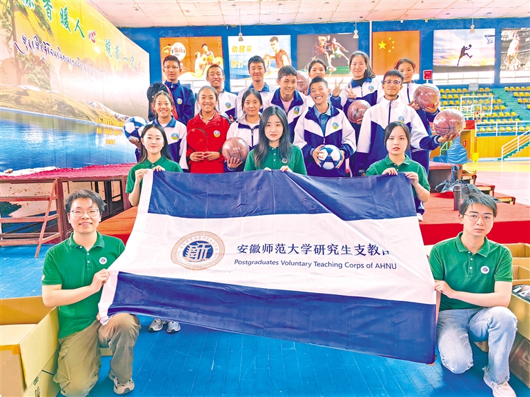 圖為安徽師范大學第二十四屆研究生支教團成員在端午節為山南市第二高級中學的學生們送去體育用品。見習記者 武沛濤 攝
