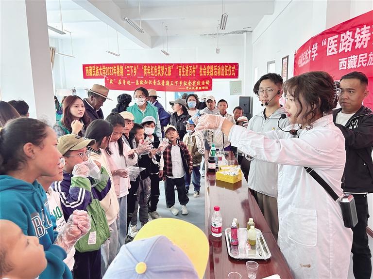 7月19日上午,西藏民族大學2023年暑期“三下鄉”“青年紅色筑夢之旅”“百生進百村”社會實踐活動出征儀式在拉薩市蔡公堂街道同心苑社區舉行。