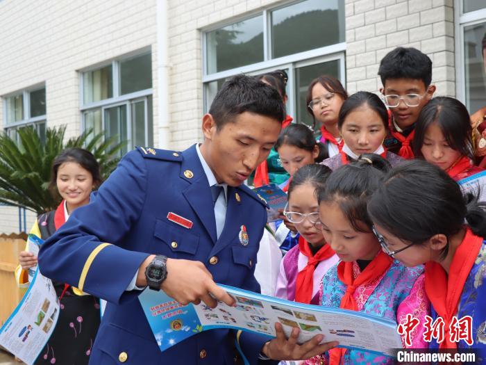 圖為消防員正在為學(xué)生普及防災(zāi)減災(zāi)知識。西繞拉翁 攝