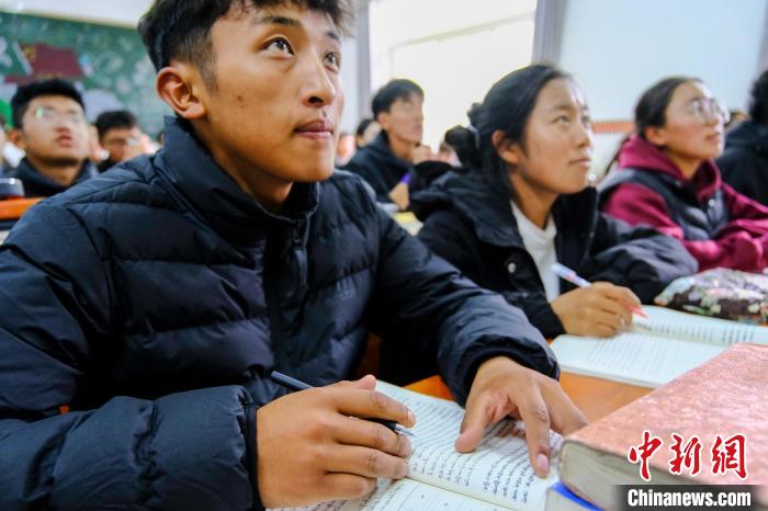 10月12日,西藏藏醫藥大學一課堂內,學生們在學習藏醫藥典籍《四部醫典》內容。中新社記者 江飛波 攝