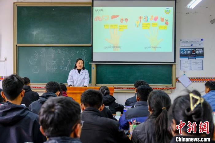 10月12日,西藏藏醫藥大學一課堂上,老師向同學們講述《四部醫典》中脈診相關內容。中新社記者 江飛波 攝