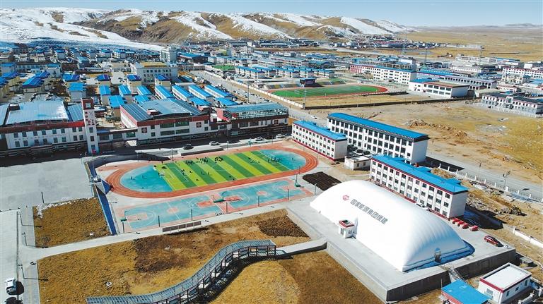 一場冬雪初晴,聶榮草原的空氣中彌漫著清新的氣息。嶄新的塑膠操場上,活躍著孩子們青春的身影。四周的教學樓、宿舍樓、多功能教室、氣膜球館等現代化建筑參差錯落,儼然是這座高海拔縣城的新地標,映射著草原教育發展的鏗鏘步伐。