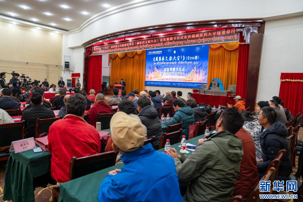 11月16日,《藏醫(yī)藥文獻大全》首發(fā)暨贈書儀式現(xiàn)場。新華社記者 旦增尼瑪曲珠 攝
