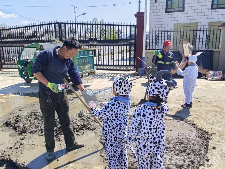 圖為拉孜縣幼兒園師生們攜手共建美好校園環境。