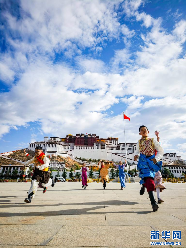 6月1日,小朋友們在布達拉宮廣場歡慶“六一”國際兒童節。新華網 旦增努布 攝