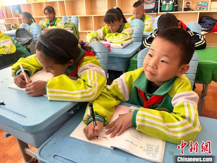 與此同時,四年級2班的漢族學生劉念恩正在上藏語文課,他抄寫有些慢,同桌的女生立刻用筆幫他找到對照位置。“我們班只有我一個漢族,我也要上藏語文課,同學們和我關系非常好,我們經常一起踢足球。”劉念恩說。