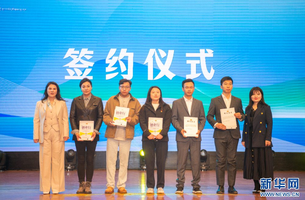 4月27日,5名大學生代表簽署創業孵化協議。新華網 旦增努布 攝