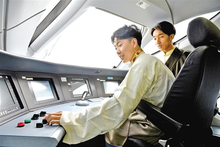 來自山西大學附屬中學西藏班的學生們在返鄉前,走進太原動車所探秘高鐵。圖為學生在動車機械師的引導下,體驗高鐵技術。張晉彤 記者 丹增平措 攝
