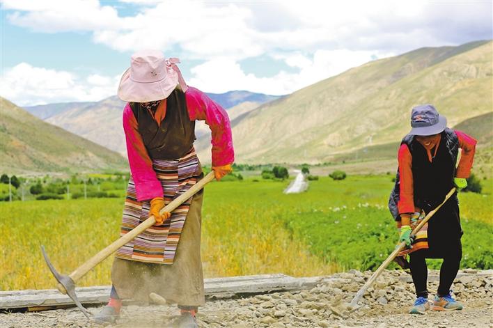 圖為西藏山南市瓊結(jié)縣群眾積極投身鄉(xiāng)村公路建設(shè)。記者 馬靜 攝