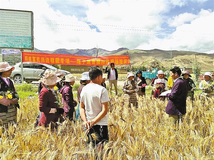 參與西藏科技興邊富民專項的科技人員在山南市隆子縣舉行黑青稞示范現場培訓。記者 李梅英 攝