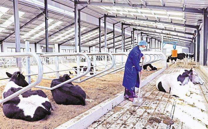 圖為養殖中心工作人員正在清理牛舍。本報通訊員 洛??酥?記者 唐斌 攝