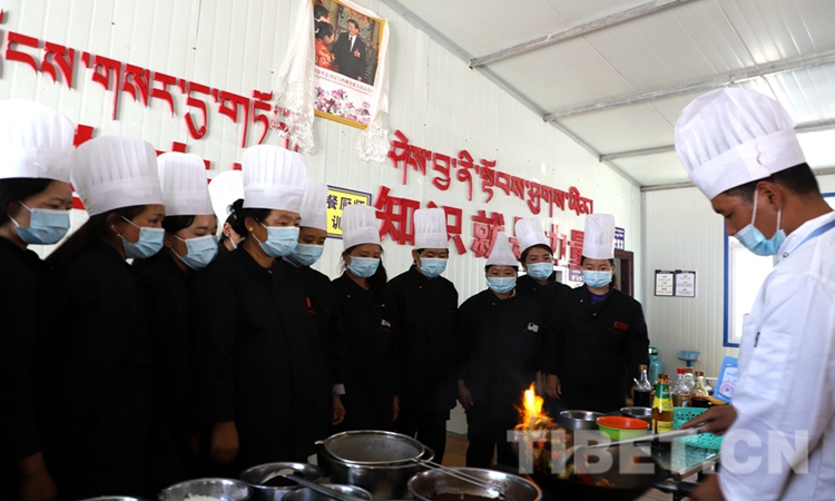 圖為卡若區就業創業培訓中心的學員在學習烹飪 攝影:賈華加