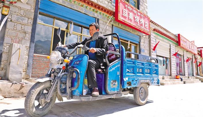 米瑪騎著三輪車為客人送飯。記者 劉斯宇 格桑倫珠 攝