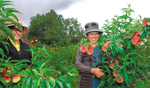 西藏林芝市波密縣東若村聯戶群眾生態采摘園里忙增收