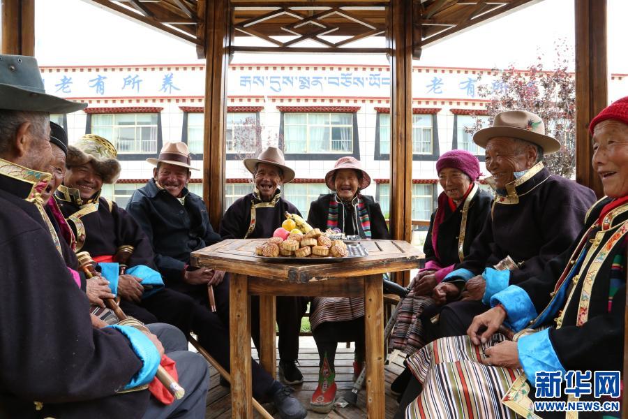 西藏山南市瓊結縣五保戶集中供養中心的老人們在過中秋佳節(2016年9月14日攝)。新華社記者 普布扎西 攝 在社會保障資金投入方面,西藏完善了城鄉居民最低生活保障制度,最低保障標準分別達到月人均847元、年人均4713元。同時,五保供養和孤兒收養實現“雙集中”,農村特困人員集中供養救助生活補助達到年人均13213元,分散供養救助生活補助達到年人均7070元。
