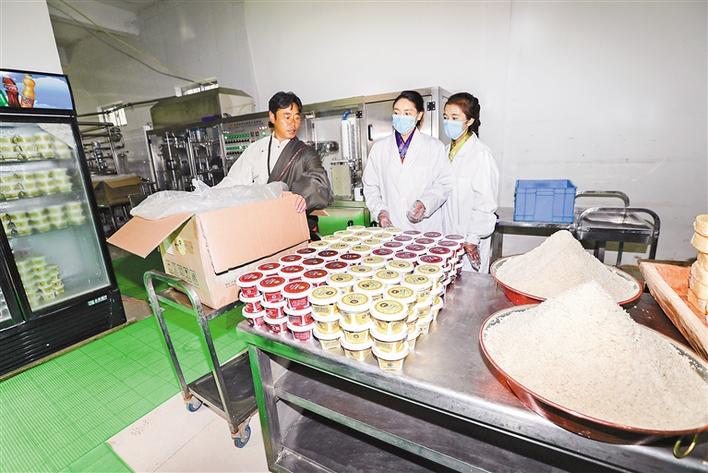 圖為墨竹工卡縣斯布鄉牦牛奶制品專業合作社的工作人員在加工特色奶制品。記者 格桑吉美 攝