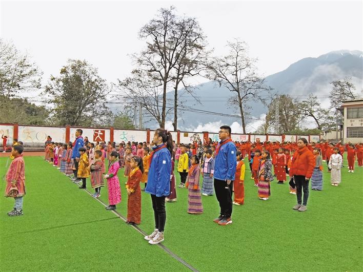 圖為3月18日,墨脫縣完全小學少年先鋒隊入隊儀式現場。記者 李洲 通訊員 次仁羅布 攝