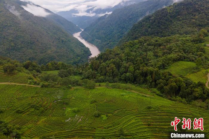 圖為西藏墨脫縣雅魯藏布江邊的茶園,如今茶葉已成為墨脫縣的特色產業。 江飛波 攝