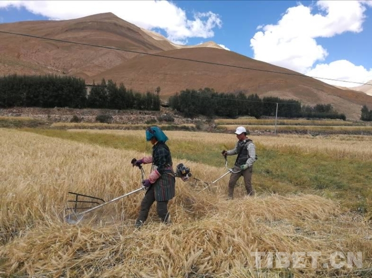 拉木堆村位于西藏自治區(qū)日喀則市定日縣扎西宗鄉(xiāng)西北約6公里,平均海拔4280米,由于地域偏僻和高寒缺氧,長期以來社會生產(chǎn)力較為落后,青稞早已是村民們物質(zhì)生活的核心內(nèi)容。2017年的3月份薩央節(jié)期間,村民們身著民族盛裝,載歌載舞,唱著頌歌行繞田頭,祈求著秋天的豐收。為確保秋收順利和提高農(nóng)業(yè)機械化水平,我們工作隊和村兩委班子經(jīng)過認(rèn)真商議,2017年9月初專程前往日喀則為每一戶村民購置了收割機。