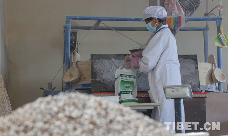 圖為山南市隆子縣洛旦農畜產品加工合作社,工人正在將黑糌粑進行包裝(資料圖)