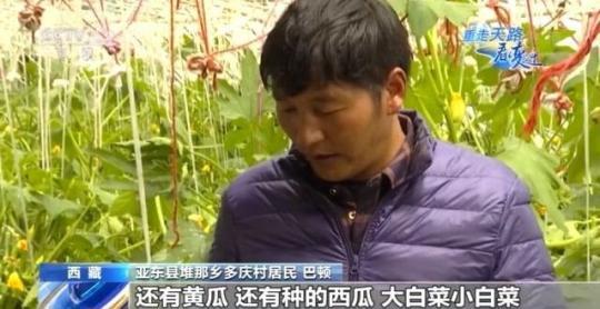 亞東縣堆那鄉多慶村居民 巴頓:番瓜我家里種的,還有黃瓜、還有西瓜、大白菜、小白菜、白蘿卜、胡蘿卜,一個大棚一年收入就是八千多。