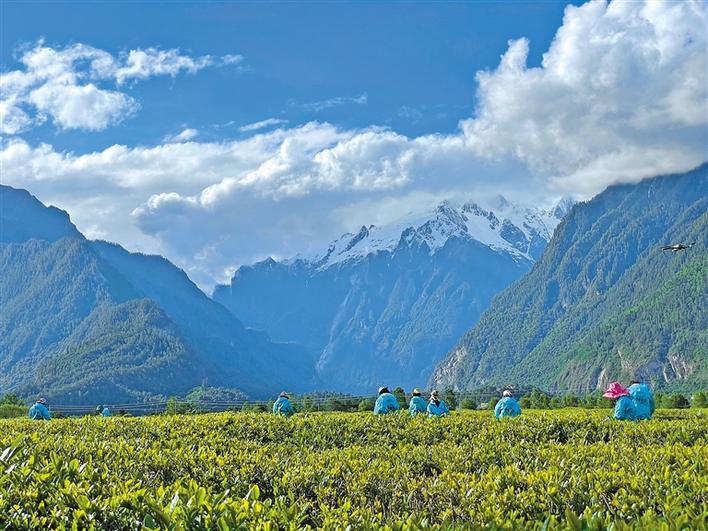 天朗氣清,茶韻悠悠。西藏林芝波密縣易貢茶場里,油菜花開得正艷;廣袤的湖畔牧場上,馬牛成群;茶農(nóng)們穿梭在茶林間,他們身挎茶簍,兩手并用,掐準“一葉一茶”,快速放入簍里,舉手低頭間,茶簍逐漸被裝滿。