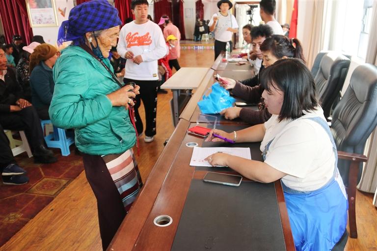 西藏福邁園林綠化有限公司為搬遷群眾發放工資。圖由恩惠苑社區提供