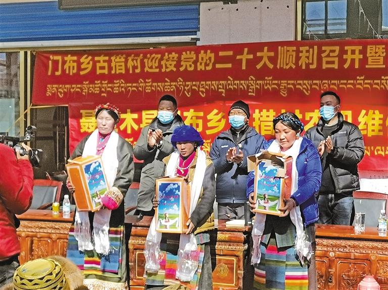 近日,日喀則聶拉木縣門布鄉古措村農機維修合作社進行分紅,共向本村55戶發放了價值6.9萬余元的面粉、大米、水壺等生活物資。此次分紅切實提升了古措村農牧民群眾的幸福感和獲得感,更加堅定了農牧民群眾永遠跟黨走,齊心協力振興鄉村的決心。